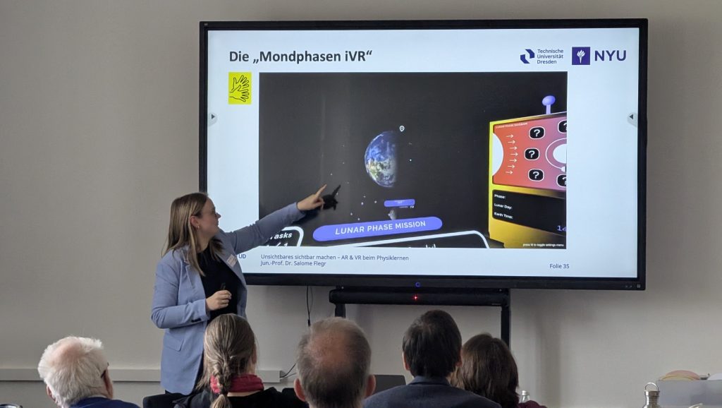 Nach der Mittagspause stellte Salome Flegr von der Technischen Universität Dresden ihre Erkenntnisse von AR & VR beim Physiklernen vor. Sie zeigte dabei sowohl die entwickelten Anwendungen, als auch die begleitenden Studien und Lernergebnisse der Schüler:innen sowie Studierenden. Auch hier konnten nach dem Vortrag die Teilnehmenden selbst mittels Tablet und AR unterschiedliche Experimente selbst ausprobieren. Abgeschlossen wurde die Jahrestagung vom Kernteam Physik. Das Kernteam entwickelt aktuell Physikboxen mit Experimenten aus unterschiedlichen physikalischen Bereichen. Der Fokus dabei sollen einfache Experimente mit didaktisch hochwertigen Anleitungen sein, die Fehlvorstellungen von Schüler:innen aufzeigen. Dabei konnten die ersten Prototypen der Physikboxen zu den Themen Reibung, Superposition und Elektrostatik unter die Lupe genommen werden.